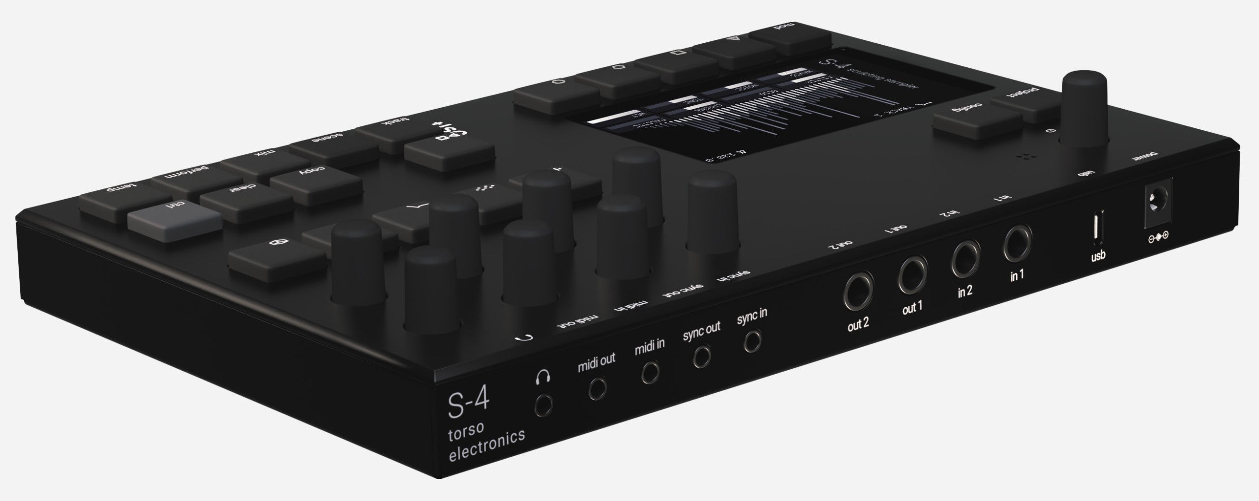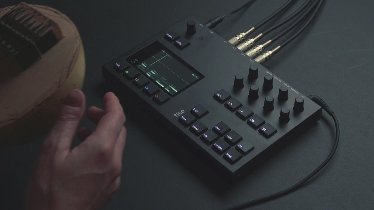 The S-4 is a sculpting sampler designed to capture and transform sounds. Merging tape-era workflows with cutting-edge technology, the S-4 redefines sound mangling by providing a futuristic platform for crafting unique soundscapes and compositions, using samples and real-time audio processing.